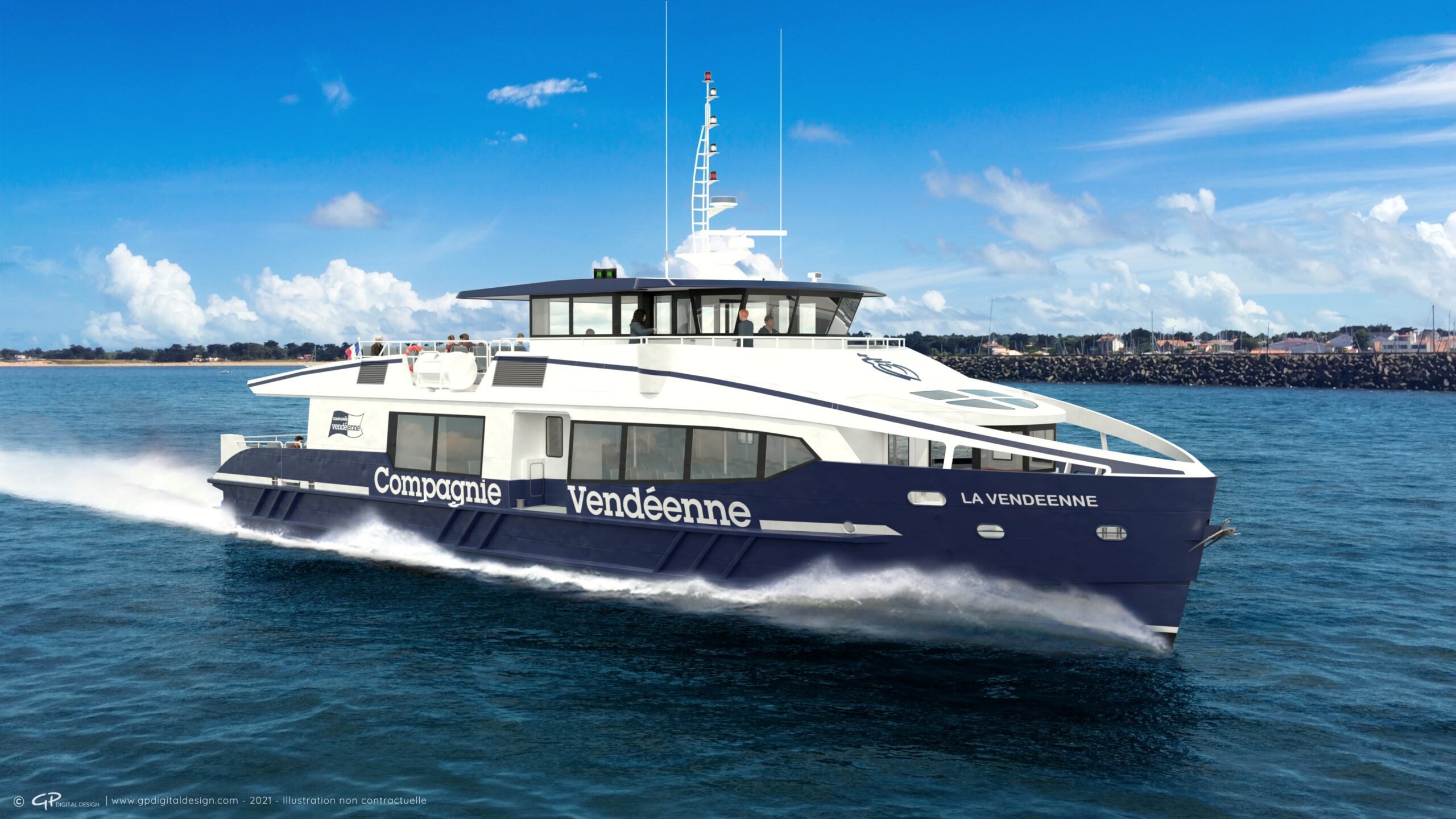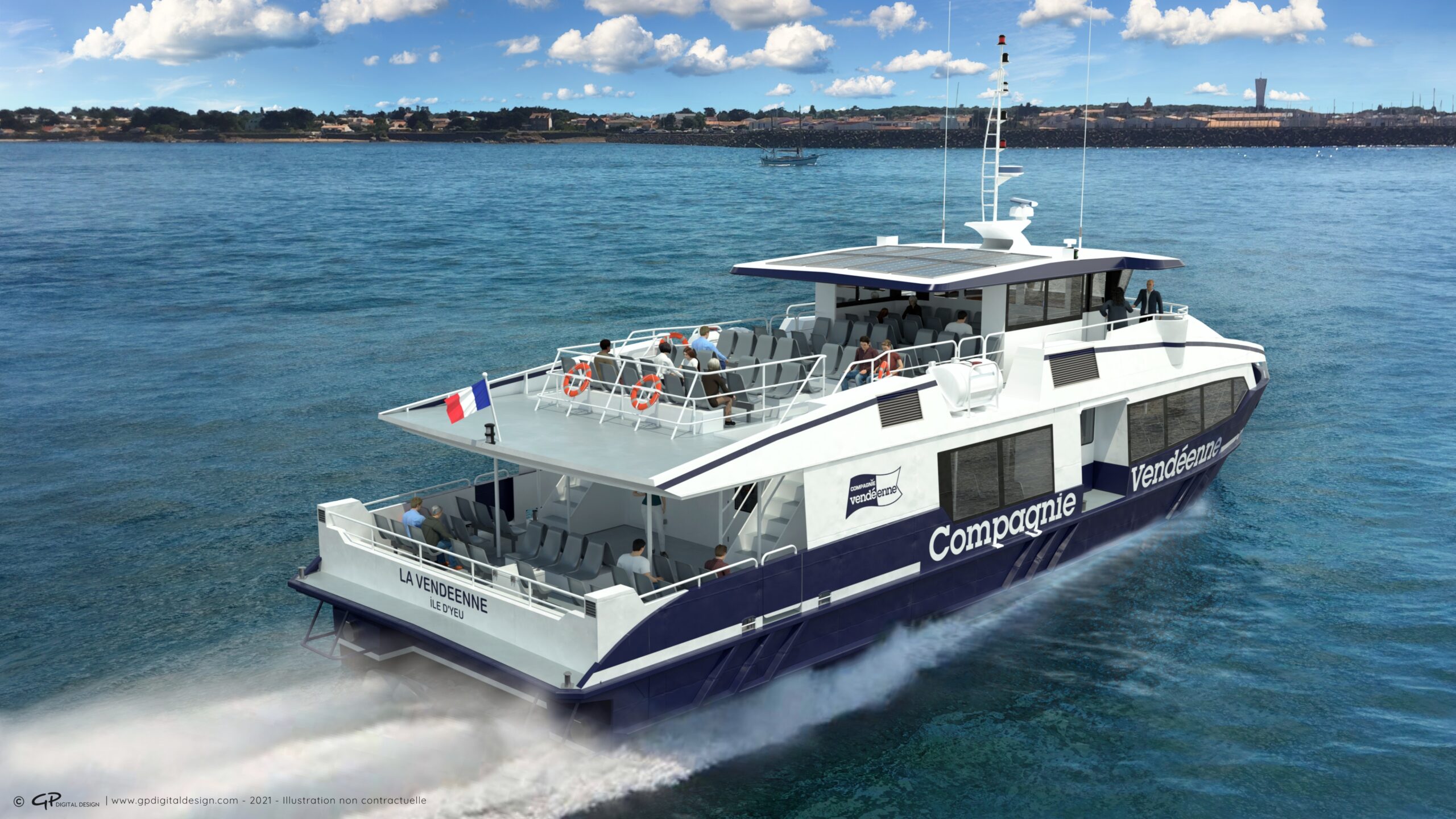 Pour le compte de la Compagnie Vendéenne, j’ai réalisé une animation 3D pour promouvoir leur future vedette à passagers livrables en avril 2022 sur la liaison vers l’île d’Yeu. Le paysage de l’île était important pour localiser la destination. Par la suite, j’ai réalisé des visuels 3D pour leurs campagnes publicitaires imprimées à l’approche de la livraison.